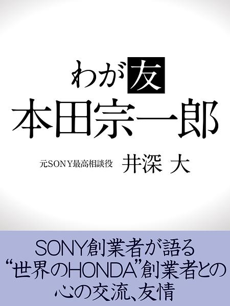 その井深氏が、心の友であり、〝世界のHONDA〟を築いた稀代の経営者、本田宗一郎氏の人間的魅力、経営者としての生き方について大いに語る。